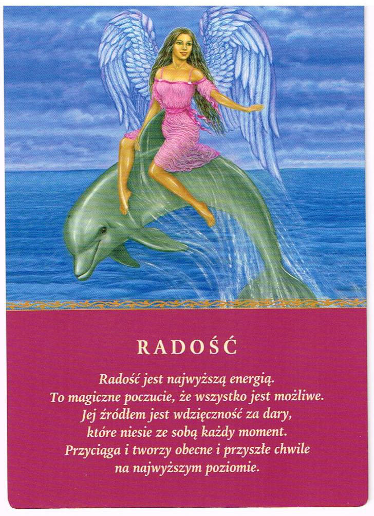 Wylosowałeś tę kartę jako przypomnienie, że źródłem Twojej mocy jest koncentracja na uczuciu radości. Poproś anioły, żeby podpowiedziały Ci, co możesz zmienić, by wprowadzić więcej radości w życie własne i innych. Jeśli czujesz się w jakiś sposób uwięziony lub prześladowany, anioły mogą złagodzić Twoje brzemię. Radosne spojrzenie na świat przyniesie Ci upragnioną swobodę, a wszystkie obowiązki zostaną spełnione.